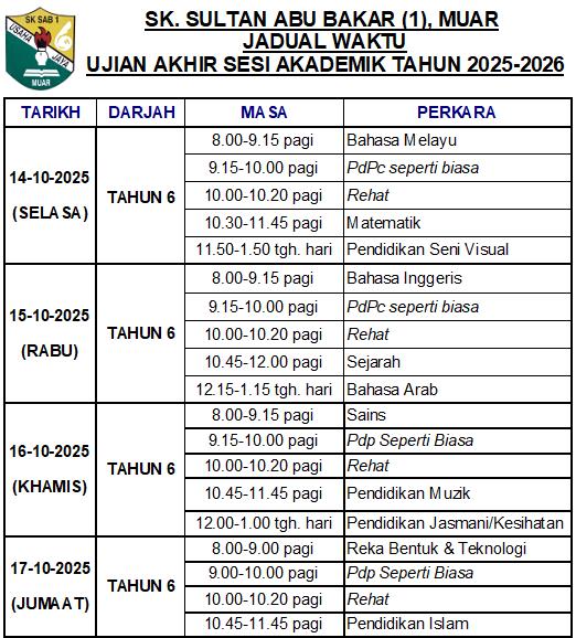 All Rights Reserved. SK Sultan Abu Bakar (1), Jalan Junid 84000 Muar, Johor, Malaysia.