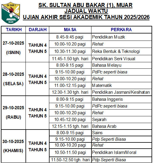 All Rights Reserved. SK Sultan Abu Bakar (1), Jalan Junid 84000 Muar, Johor, Malaysia.