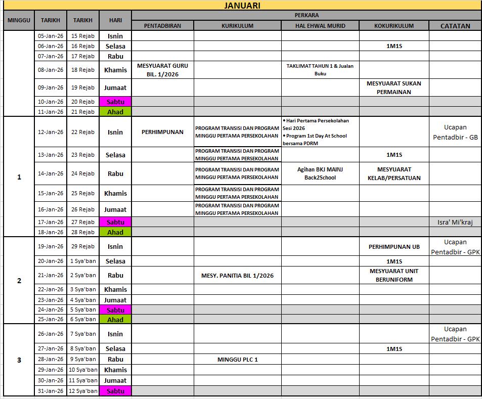 TAKWIM SEKOLAH KEBANGSAAN SULTAN ABU BAKAR 1, MUAR