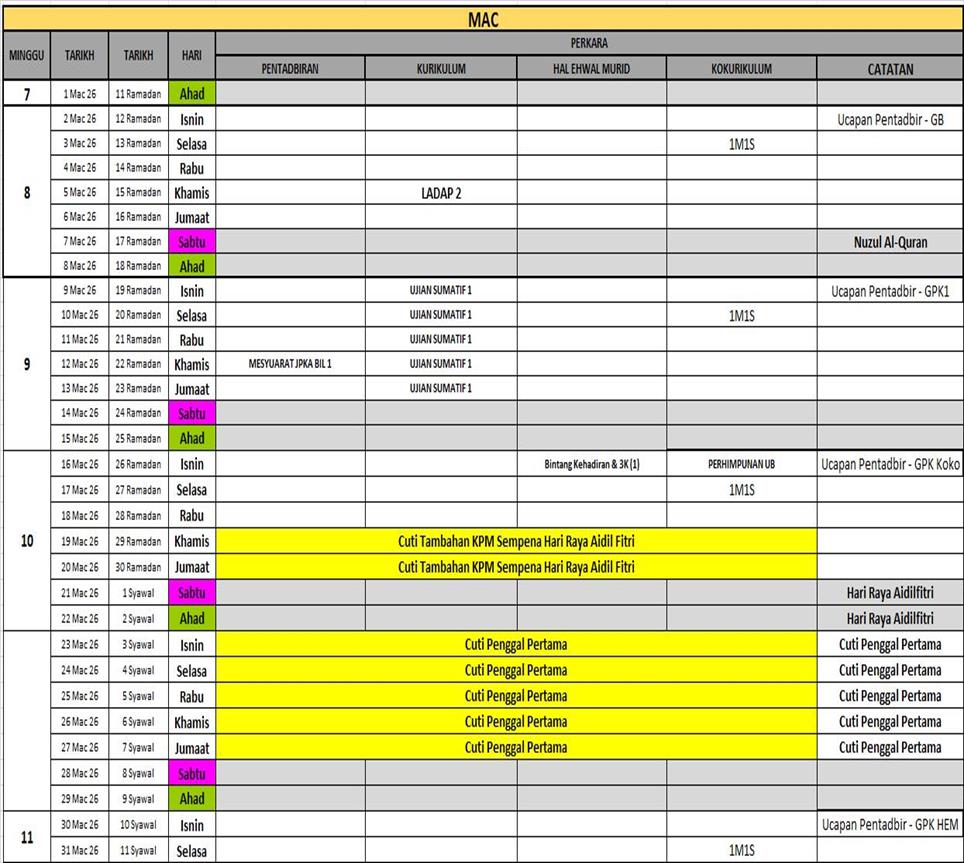 TAKWIM SEKOLAH KEBANGSAAN SULTAN ABU BAKAR 1, MUAR