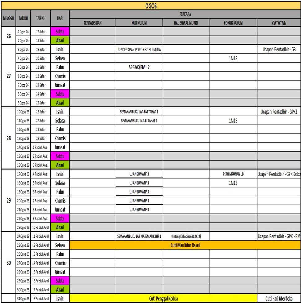 TAKWIM SEKOLAH KEBANGSAAN SULTAN ABU BAKAR 1, MUAR